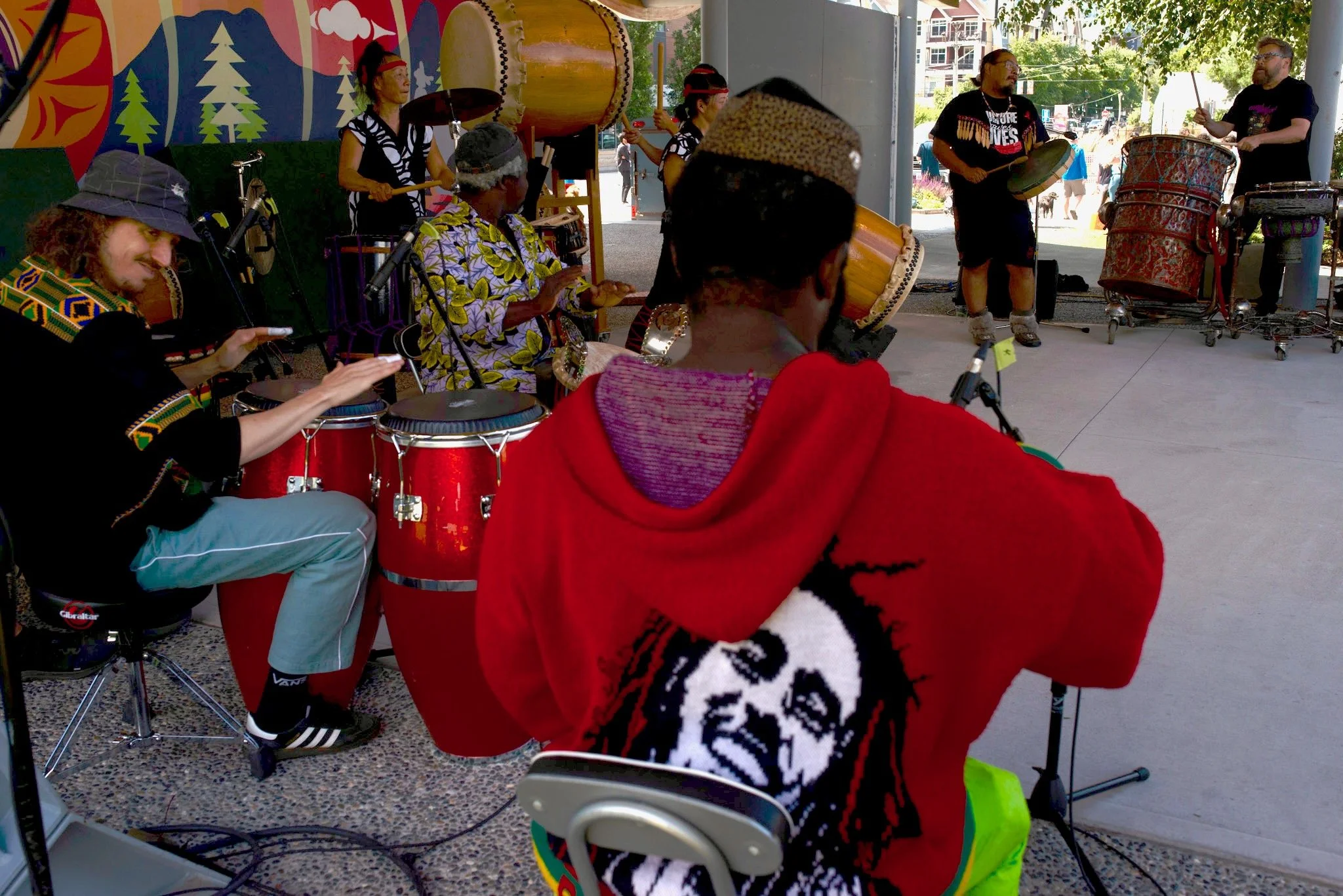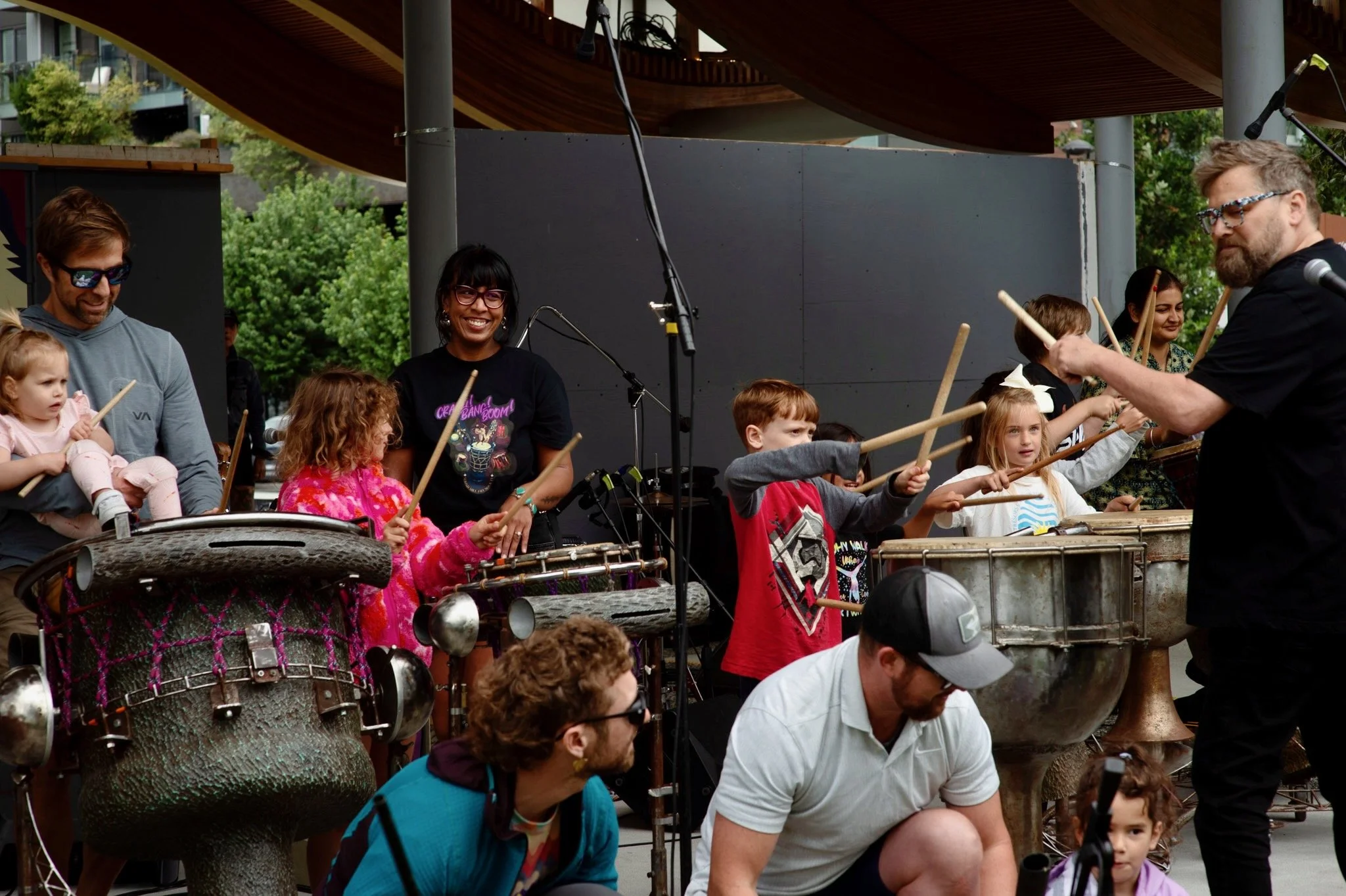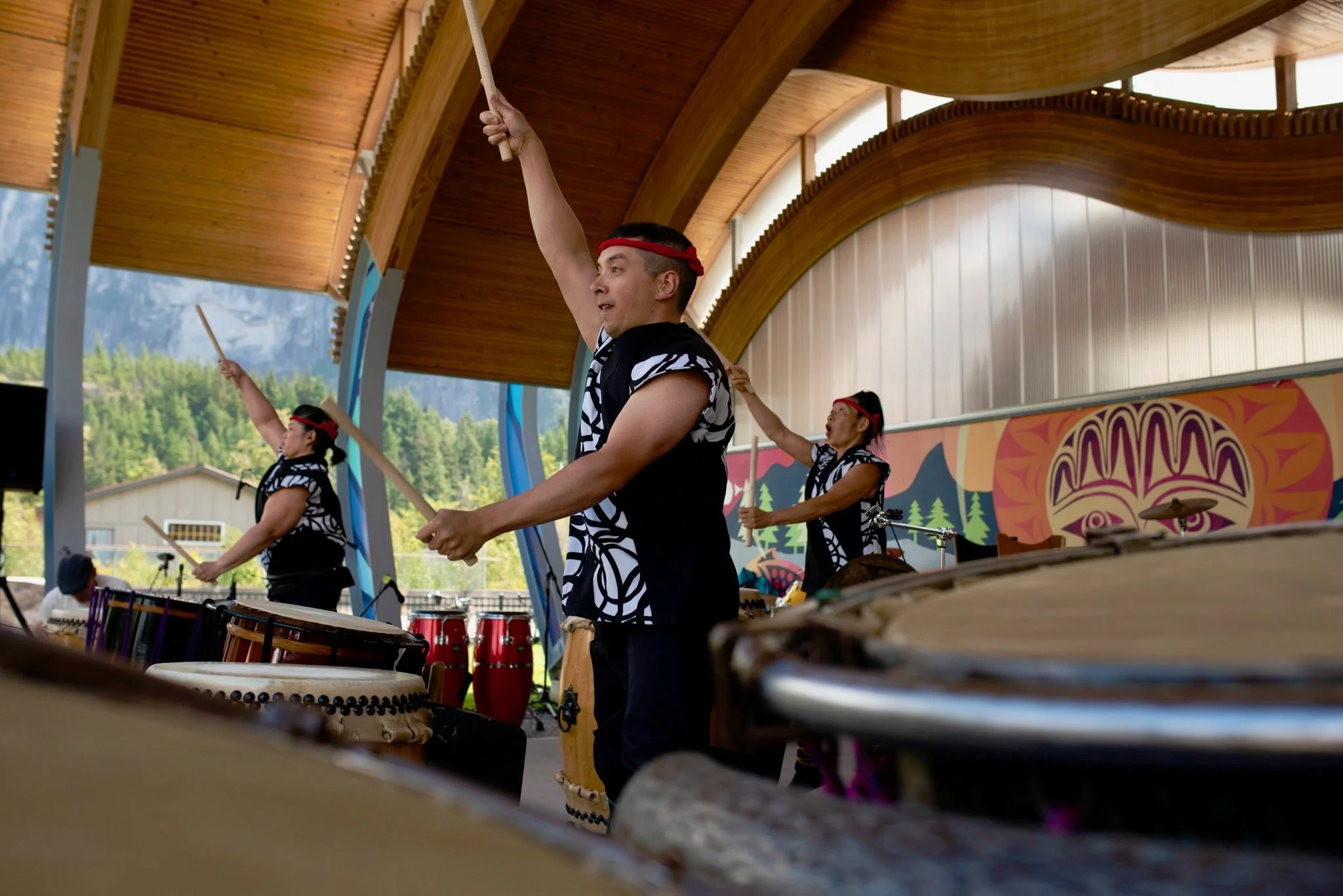 Crash! Bang! Boom! was a world music percussion event presented at Junction park in Squamish on July 26th 2025. Presented by The Sound Mill Art Society and from funding from Squamish arts. The show featured performances from Welhtima Kexwusem, William Wallace’s drum workshop, Kocassale Dioubate’s Kunda and Uzume Taiko. The show finale was a collaboration between all the groups involved.